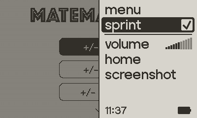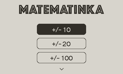 Matematinka is a math drill game for kids on Playdate. Work through ten problems per round across a range of modes - from simple addition and subtraction to multiplication, division, and mixed operations up to 1000.